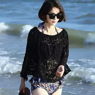 DK swimsuit women's fashion new small chest gathered lace blouse bikini three-piece hot spring resort beach swimsuit