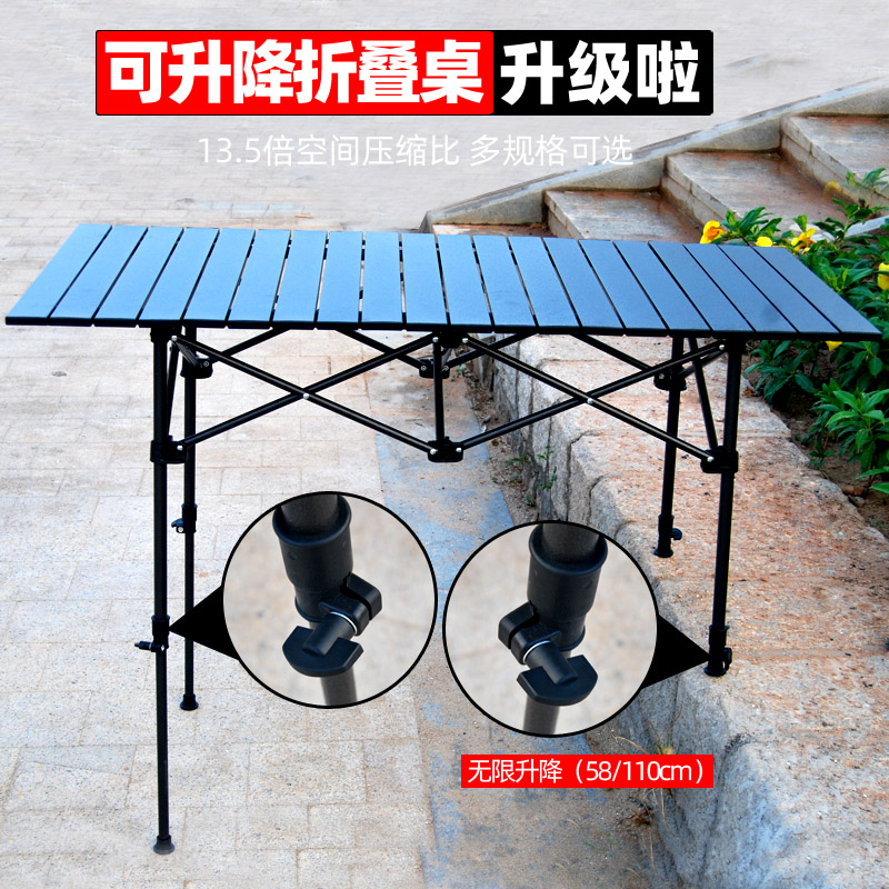 Portable car outdoor picnic folding table and chair Ultra-light rectangular stall ground push camping barbecue table can be lifted