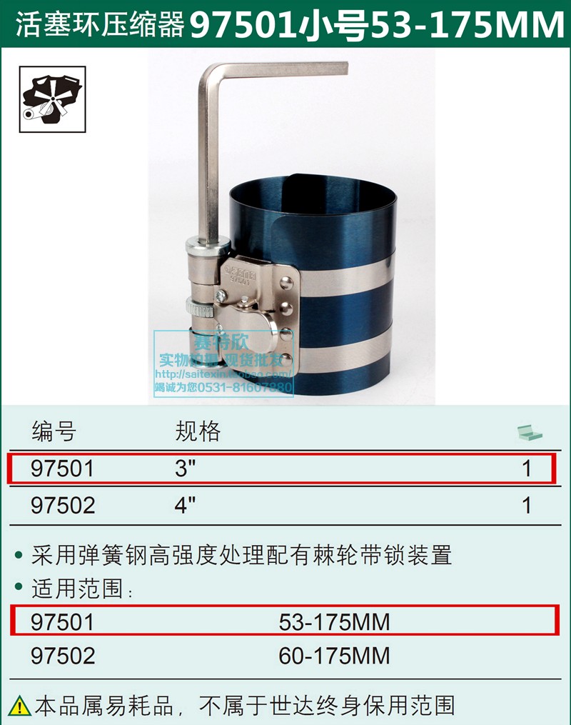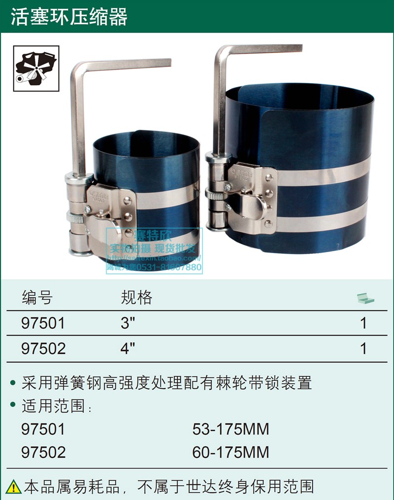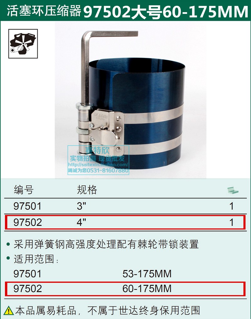 97501 Piston Ring Compressor 3 "53-175MM97502 Piston Ring Compressor 4" 60-175MM Ratchet Type Piston Ring Compressor Quick Tighten Wrench A 975