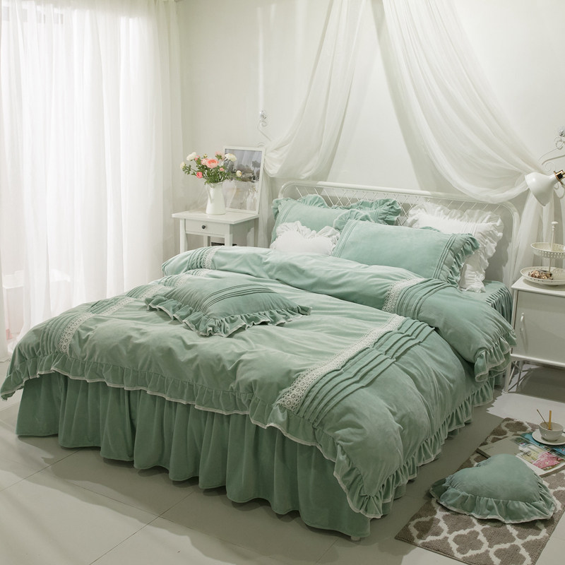 Eurostyle Winter Naked Sleep Crystal Suede Princess Wind Coral Suede Four Pieces Thicken Warm-Style Velvet 1 8m bed skirt style