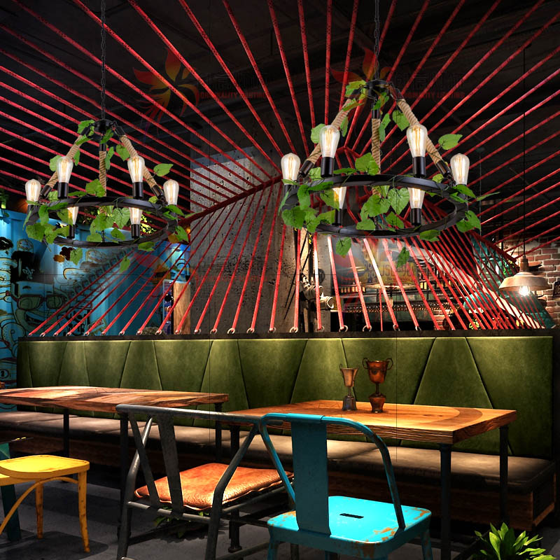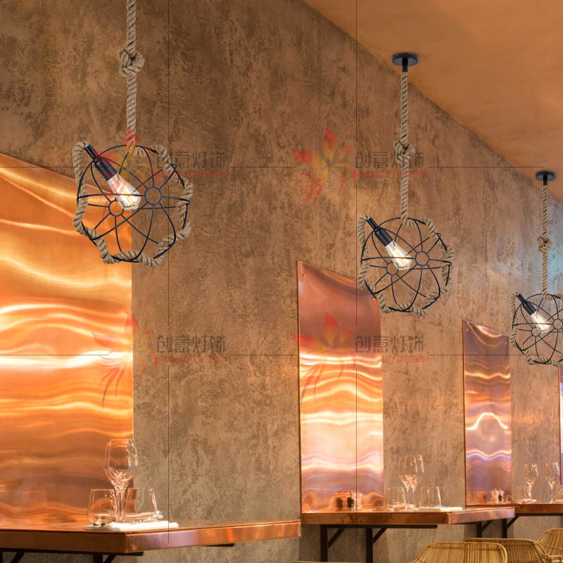 Loft hemp rope chandelier clothing store coffee shop internet cafe bar management shop milk tea shop plant iron decorative lamps
