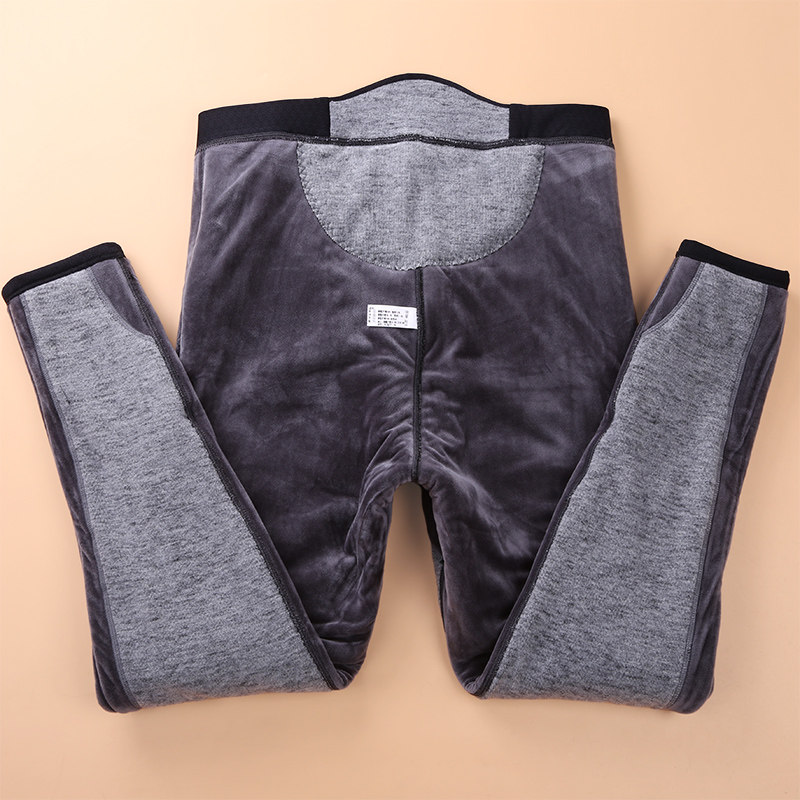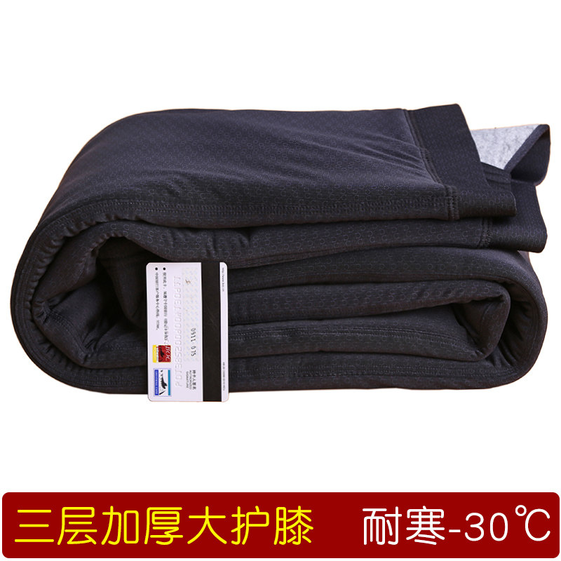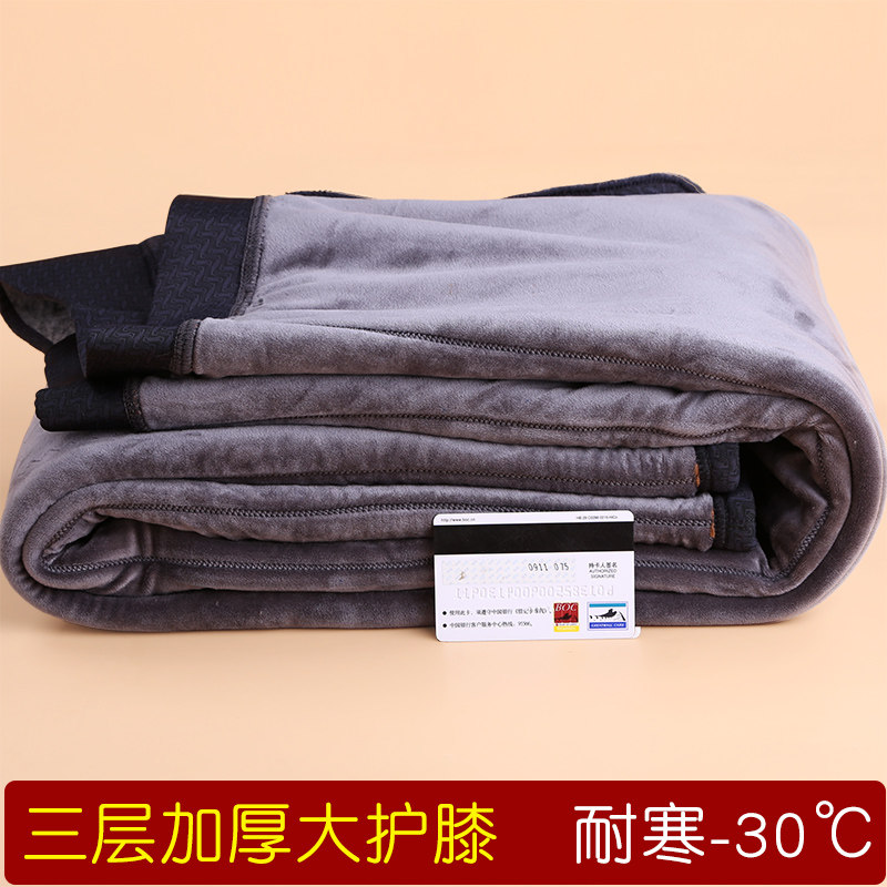 Winter men's three-layer thickened velvet plus size warm pants Glossy high waist slim knee pad waist pad cotton pants Velvet pants