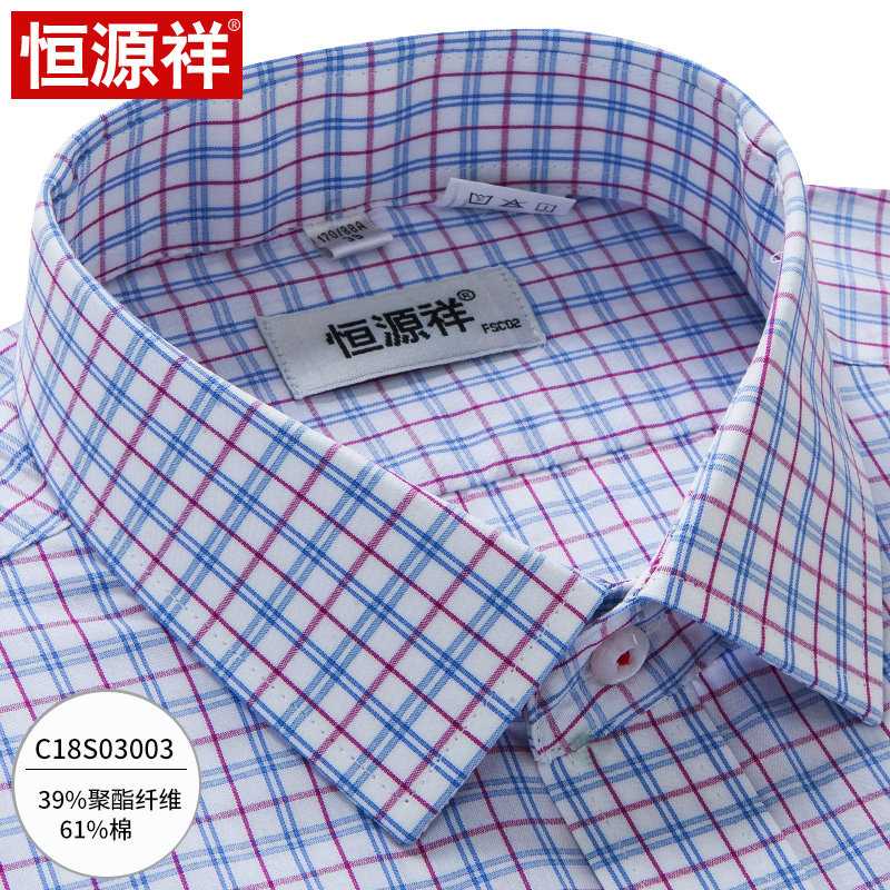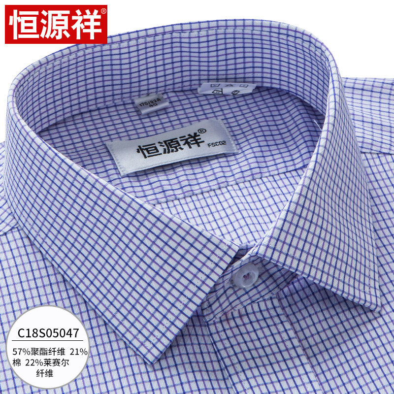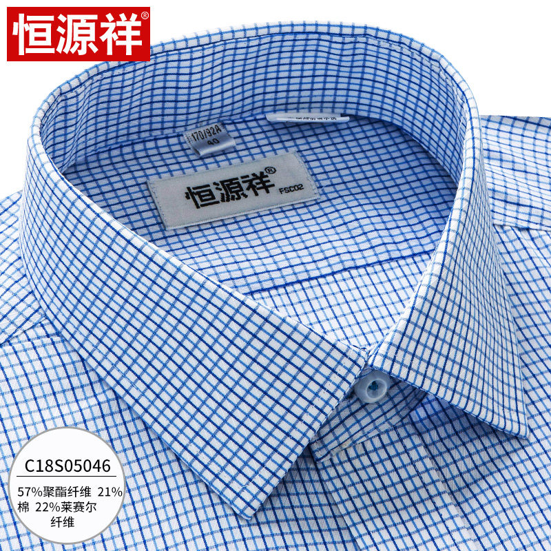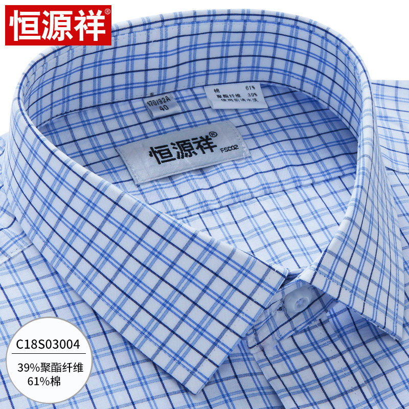 Constant Source Xiang Blue Plaid Shirt Man Long Sleeve Business Casual All-cotton Middle Aged Dad Short Sleeve Pure Cotton Shirt Man