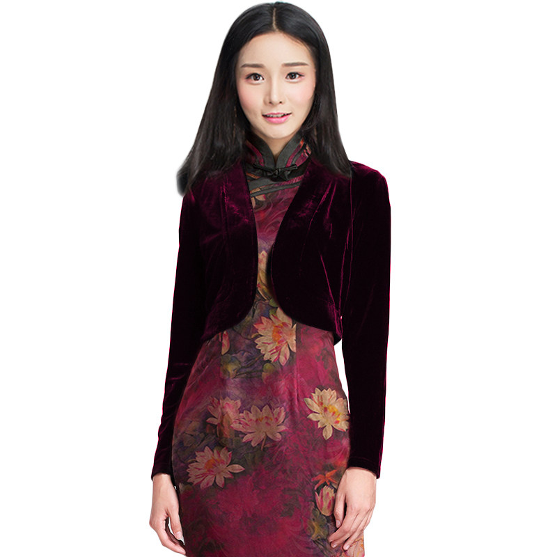 Huals Classic 100 Hitch Qipao Small Shawl 2021 Autumn Winter New Short Version Open Flap Jacket Short Jacket Velvet Qipao External Lap