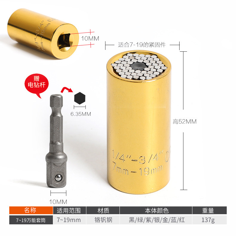 Universal sleeve wrench suit 7-19mm multifunction ratchet fast Wanuse screw lengthened sleeve barrel tool