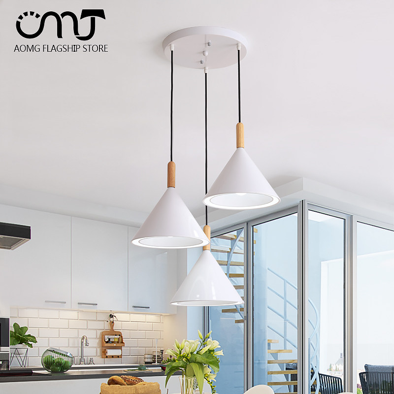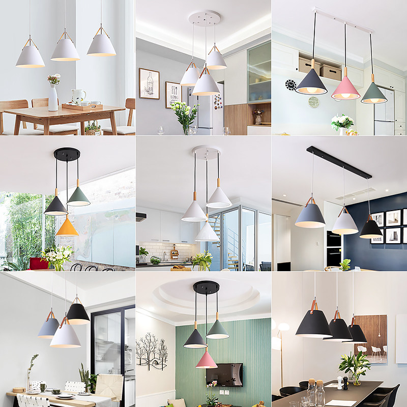 Nordic dining room chandelier Modern simple dining room bedroom bar light Creative personality Wrought iron three-headed macaron lamp