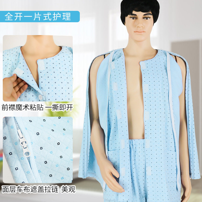 Three-layer padded patient easy to wear and take off nursing clothes Elderly paralyzed bed arm and leg fracture Wear clothes zipper