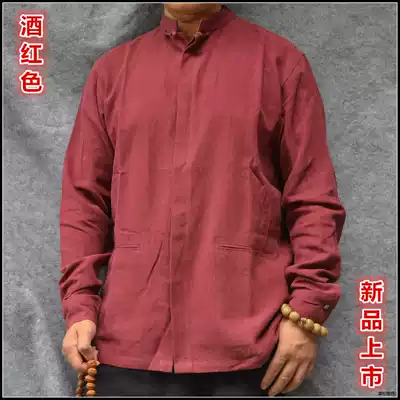 Chinese style cotton linen long sleeve T-shirt men's Tang jacket loose large size collar hemp cardigan Chinese dad dress T
