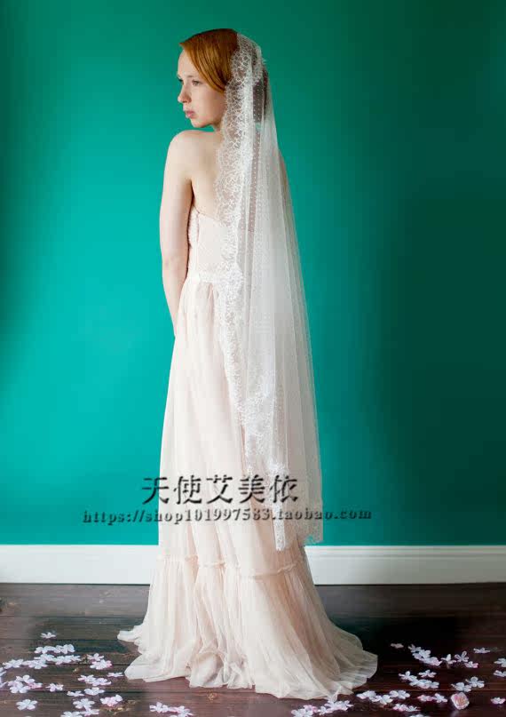Meritocratic retro lace eyelash head yarn light and luxurious wedding dress Accessories Wave Dot soft yarn Head yarn White Short Travel Pat Modelling