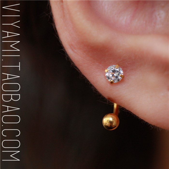Fire zircon U-shaped hypoallergenic screw earrings earrings earrings mini ear bone nails that do not need to be picked for sleeping