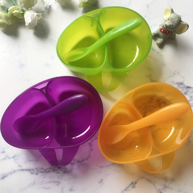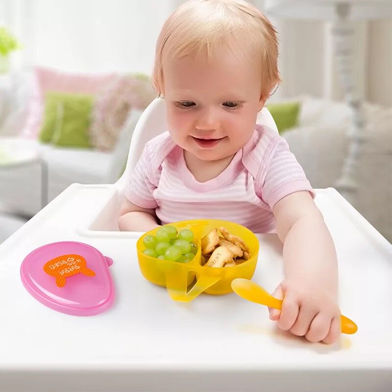 Hong Kong Heguo baby non-staple food bowl portable outgoing baby cartoon tableware set children's compartment bowl with spoon and lid