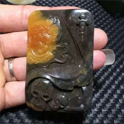 Natural Yellow Dragon Jade Group, water flower, pendant, blessing, hanging, Fortune, evil pieces, clever color chicken oil yellow
