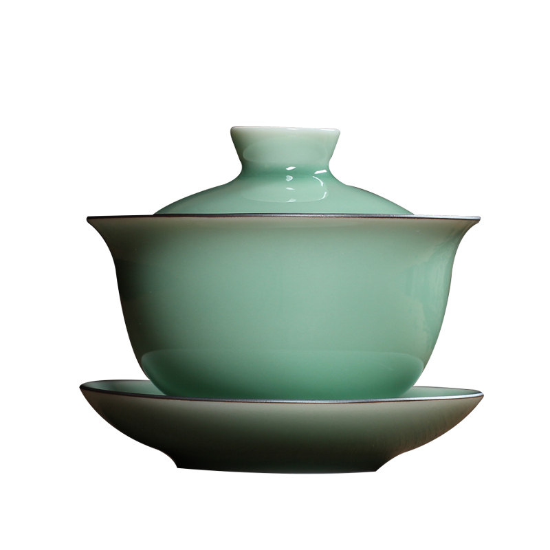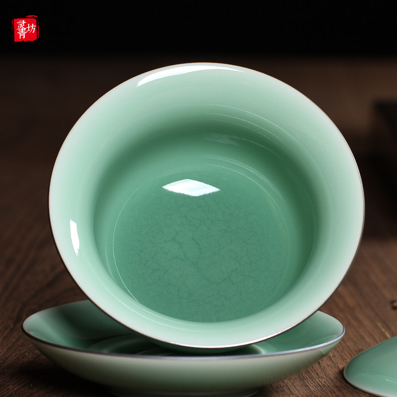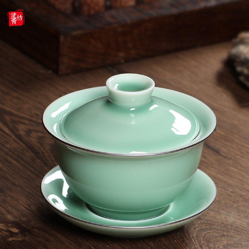 Ceramic Three-Tao Cover cup Ceramic Mei Handicraft Kungfu Tea Tools Tea Bowl Thin Tire Thick England