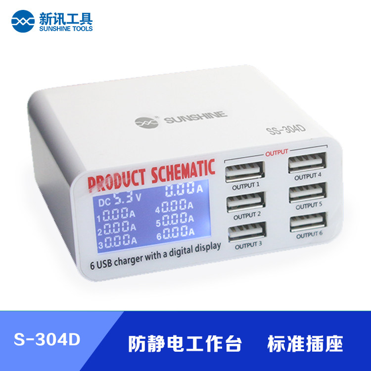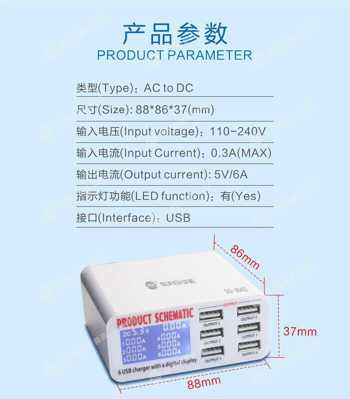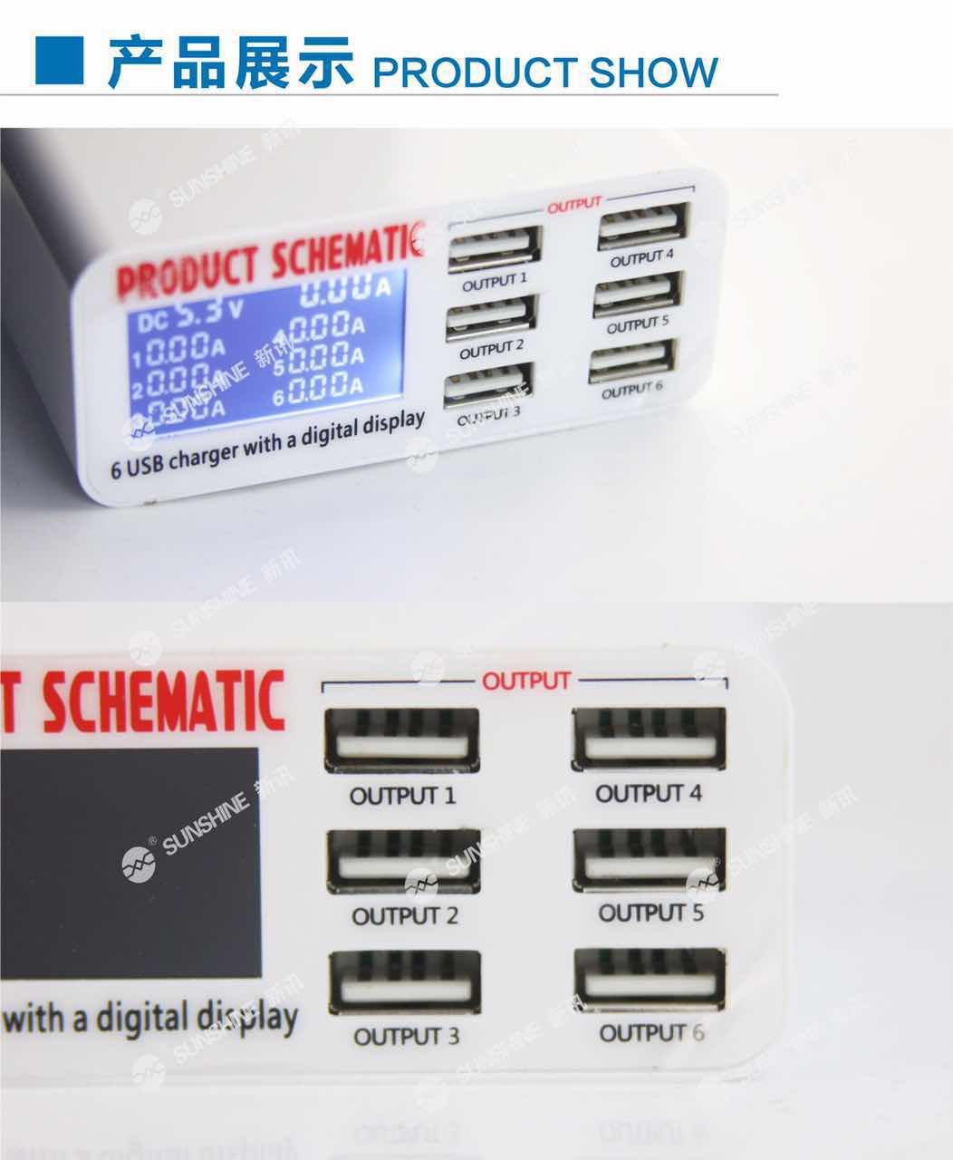 News Mobile phone tablet multi-port charger 6-port USB plug voltage and current display 5V2A porous socket charger