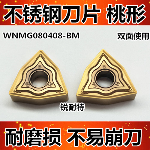 Numerical control blade stainless steel car knife WNMG080408BM triangular knife grain outer round inner hole knife head abrasion resistant