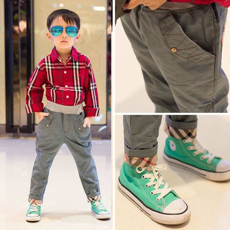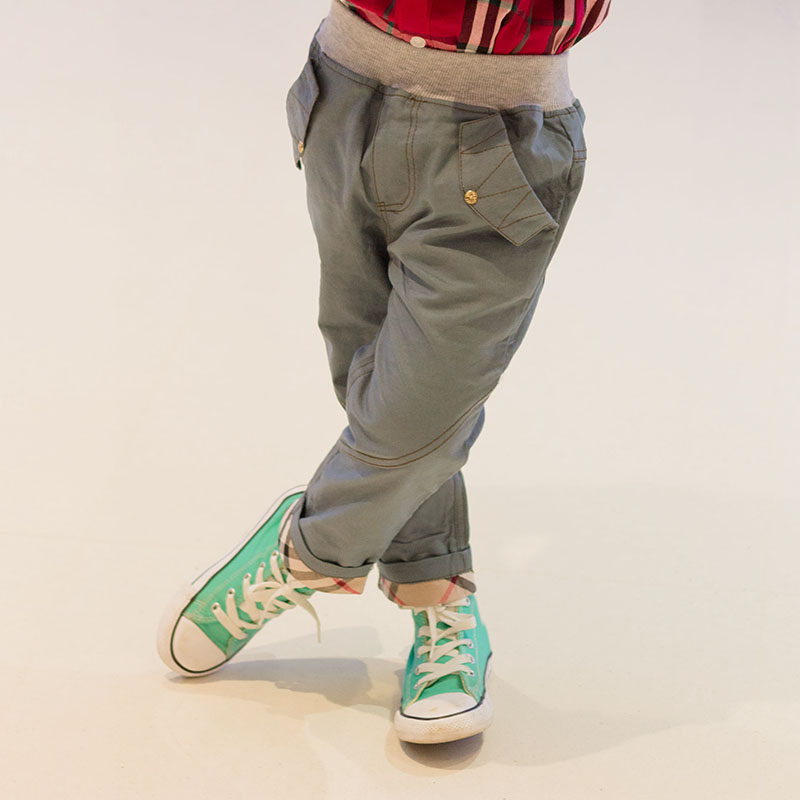 Boys' clothing medium and large children's British style rolled edge trousers new spring and autumn casual all-match western style washed trousers tide