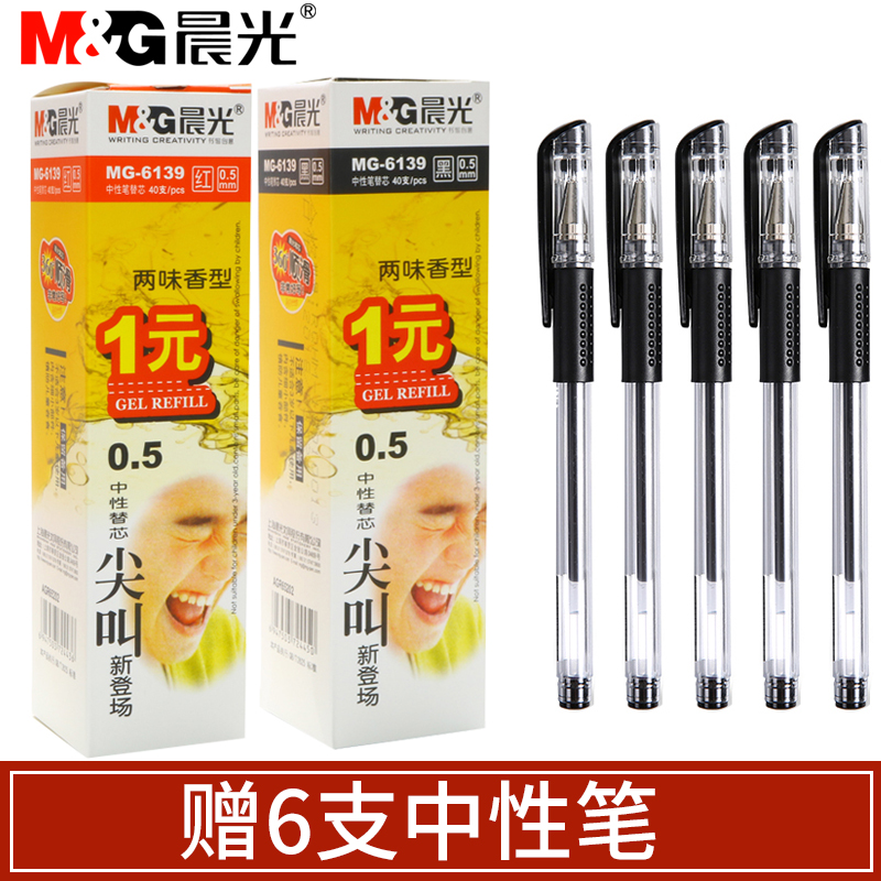 Scream refill 0 5mm morning light black two Medium Pen Core Semi-Needle Tube With Scented Type Students Examination With Pen Core mg-6139 Teacher Special Red Medium Pen Core 40 Support