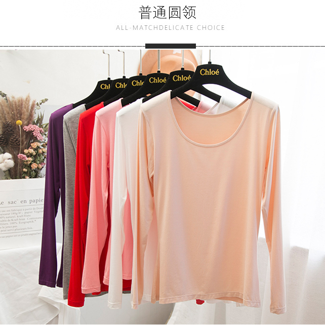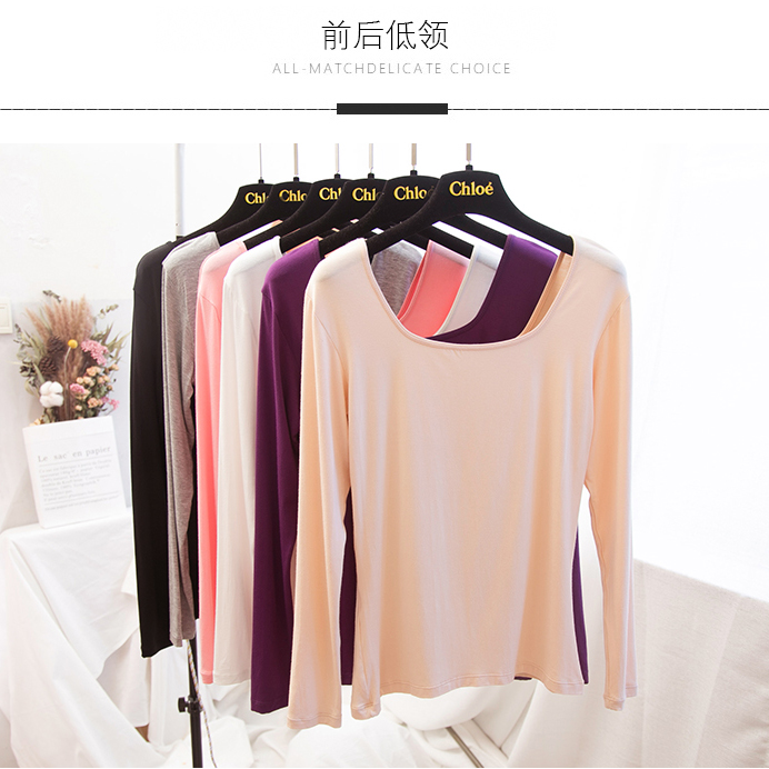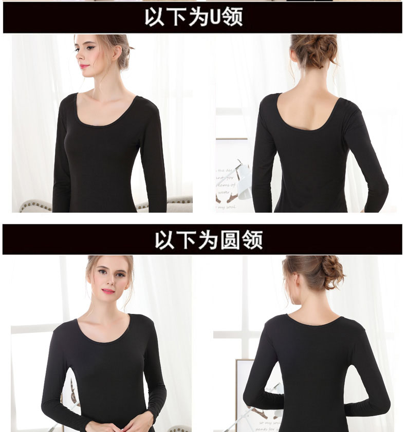 Spring autumn ultra-thin MoDel beating bottom shirt 100 hitch woman dress long sleeve low collar tight fit large U collar bottom T-shirt close-fitting