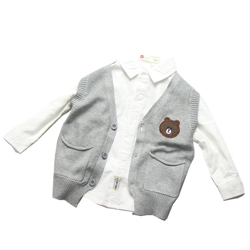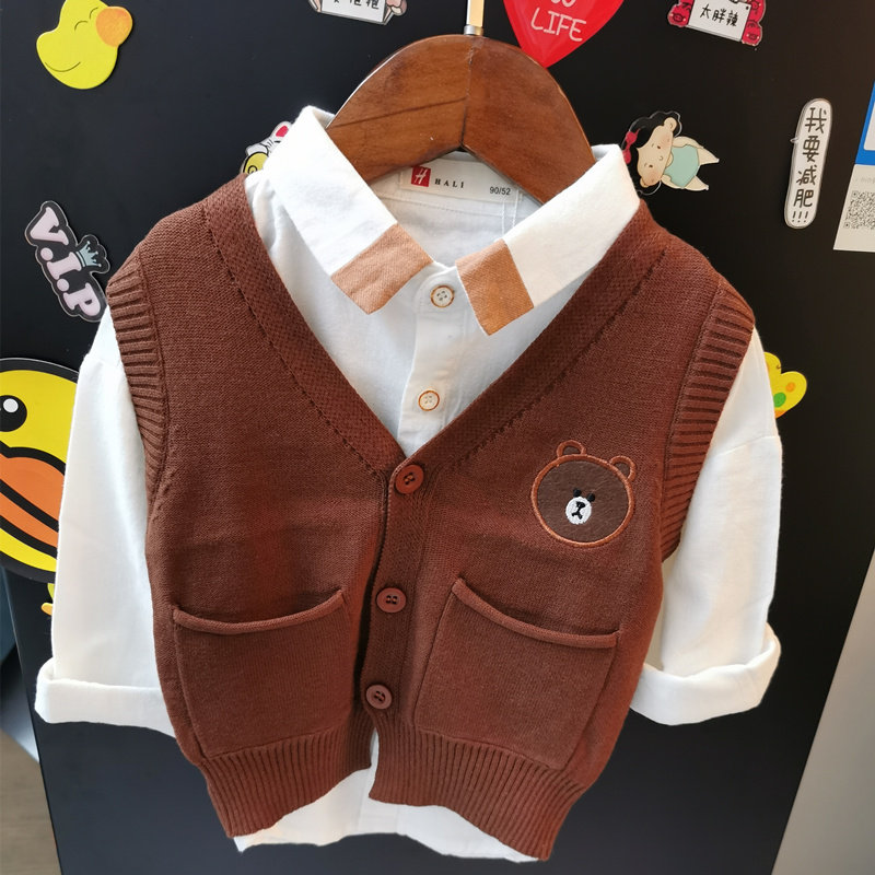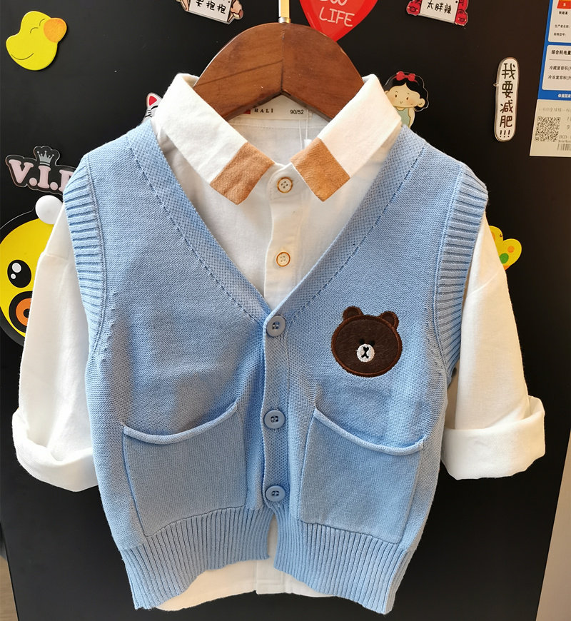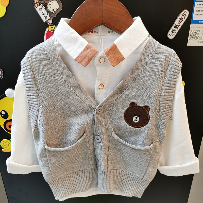ins Japanese children's clothing spring and autumn thin section boys and girls baby pure cotton knitted bear cardigan vest vest