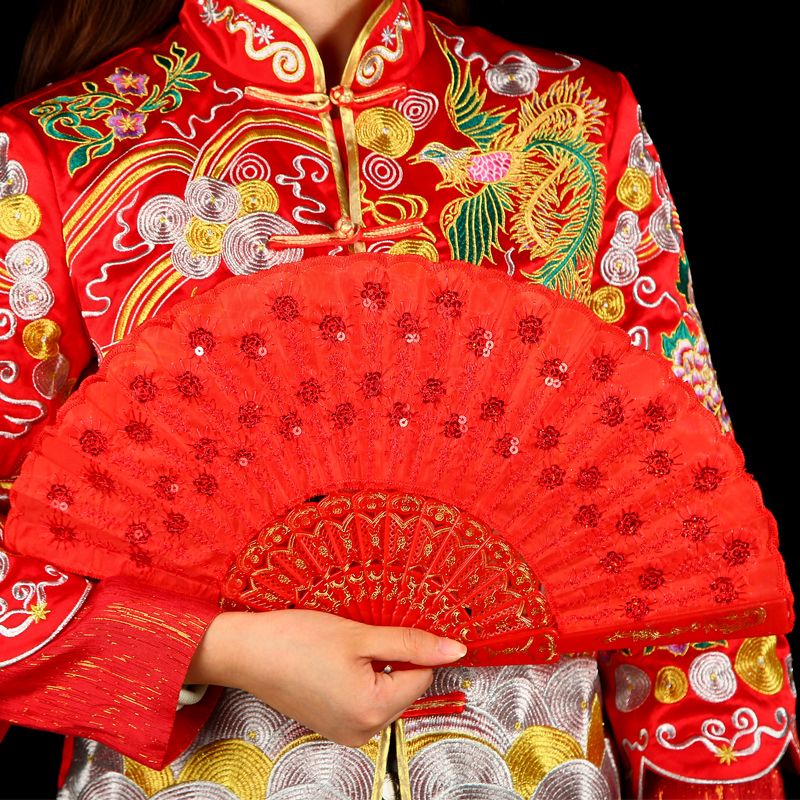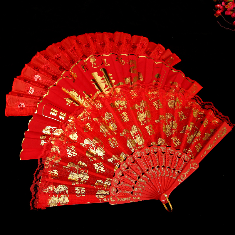 Wedding bride fan Chinese style Xiuhe vintage Chinese style folding fan Wedding wedding props Xi fan woman's dowry
