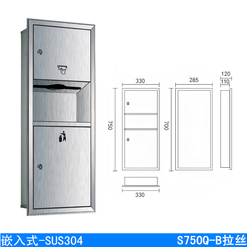 Stainless steel toilet paper box two-in-one built-in combined commercial engineering removable toilet paper box rack with trash can