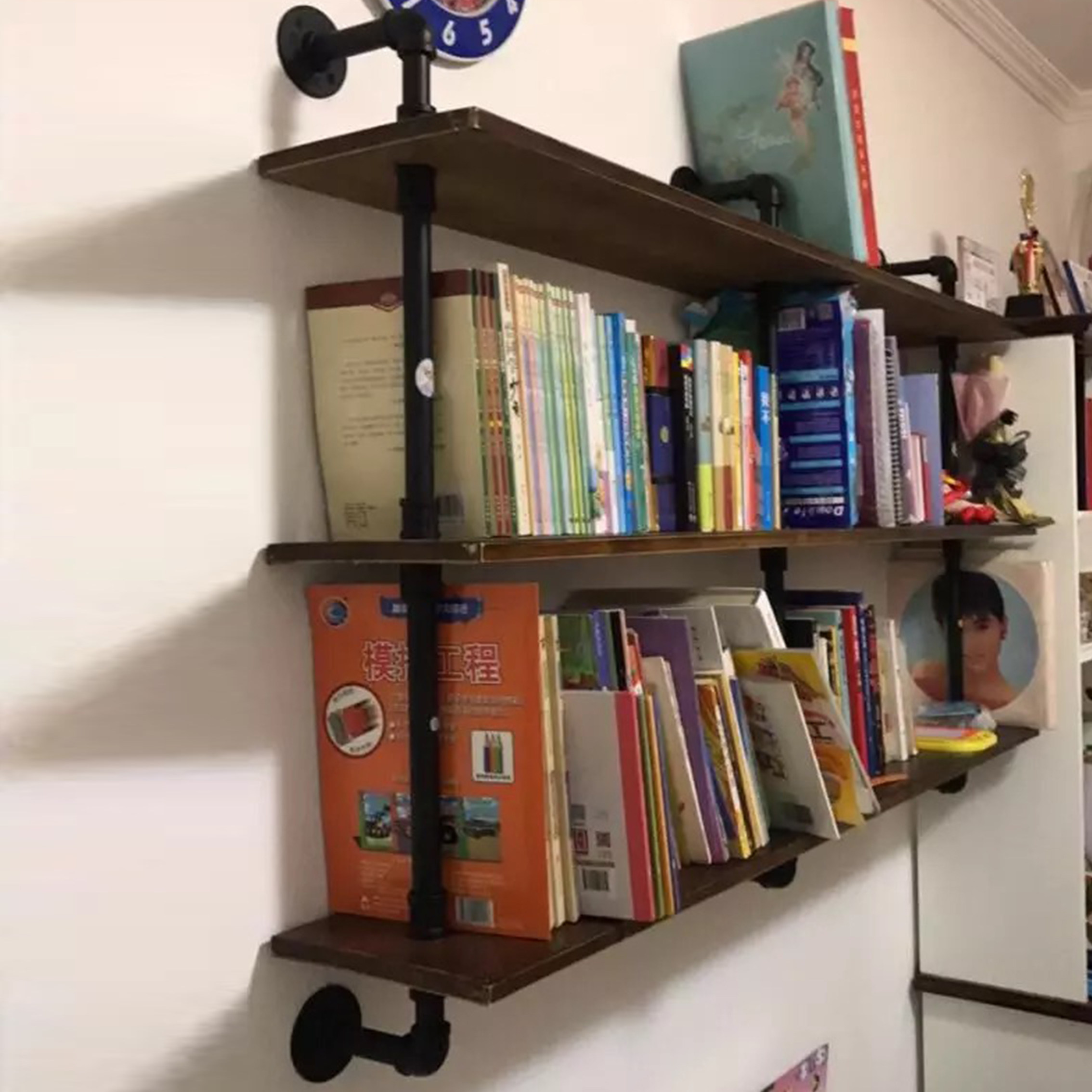 loft industrial water pipe wall shelf shelve wood living room wall-mounted shelve shelf separator bedroom floor shelf