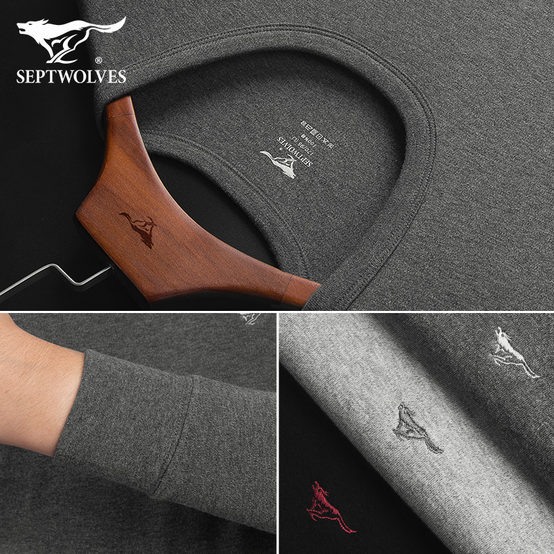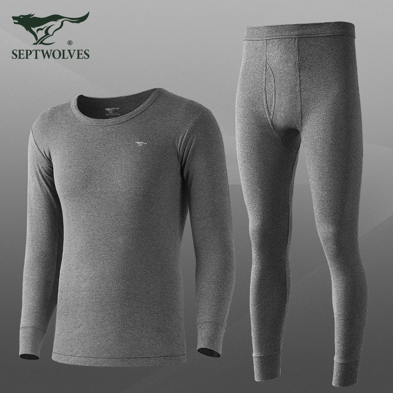 Seven Wolves Fever Coat Men's Autumn Clothes Pants Suit Pure Cotton Thin Cotton Sweatshirt 100% Full Cotton Autumn Clothes Sanitary Pants Man