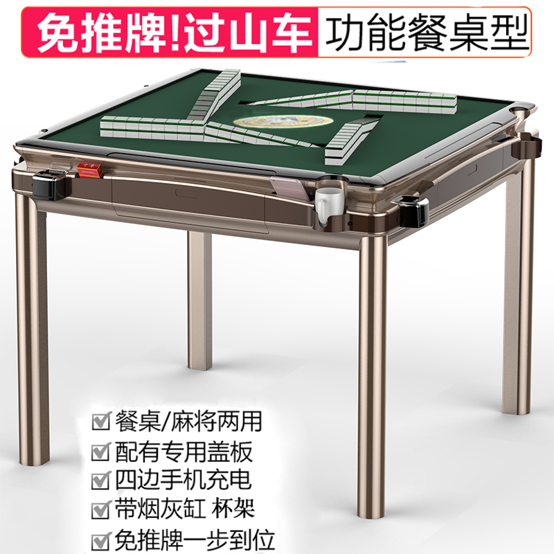 Mahjong machine automatic four-mouth dining table dual-use folding mute household Shanghai package installation roller coaster Mahjong table