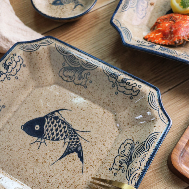 Day Style Retro Square Dish Deep Dish dishes Dish Ceramic Home Creative Personality Dishes Cutlery Soup Pan Sara Pan