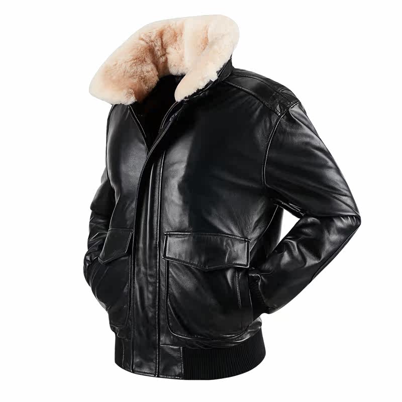 Wool Removable Hair Collar A2 Flying Jacket Short Head Layer Sheep Leather Leather Leather Clothing Man