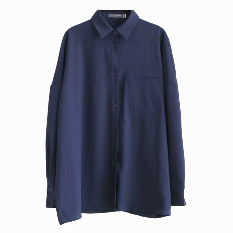 (LAMOBO exclusive @ special) quality finework oversize solid profile pocket hemp spinning shirt