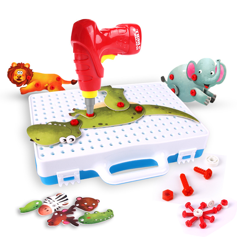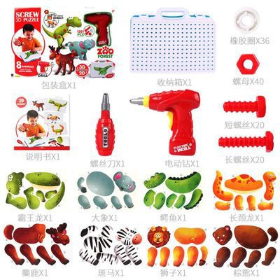 Shivering Tongan electric drill nut Composition Disassembly Toy Child Wring Screw Assembly Toy Dinosaur Elephant Lion