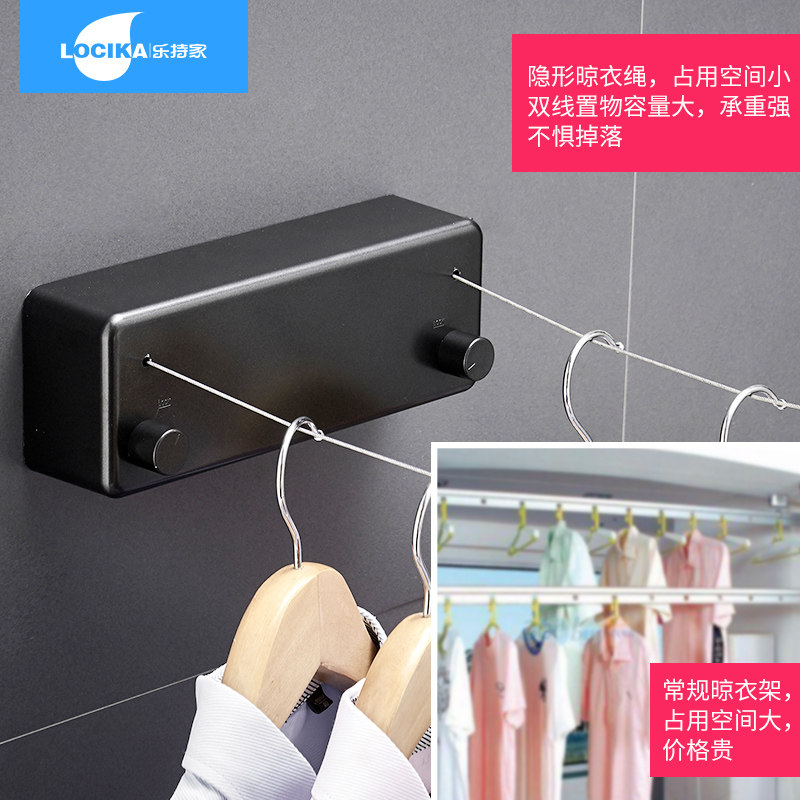 Punch-free clothesline indoor shrinkage clothes hanging cool clothes invisible telescopic drying rack wire balcony