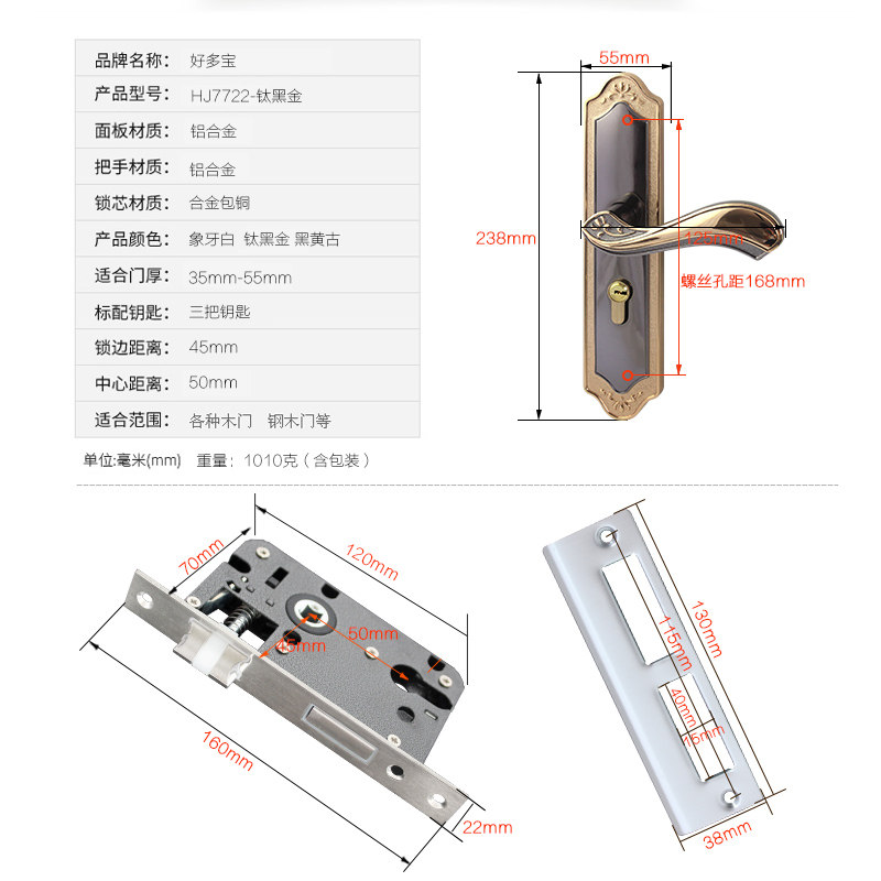 Aluminum alloy mute European interior door lock handle lock wooden door handle handle white black yellow bronze gold