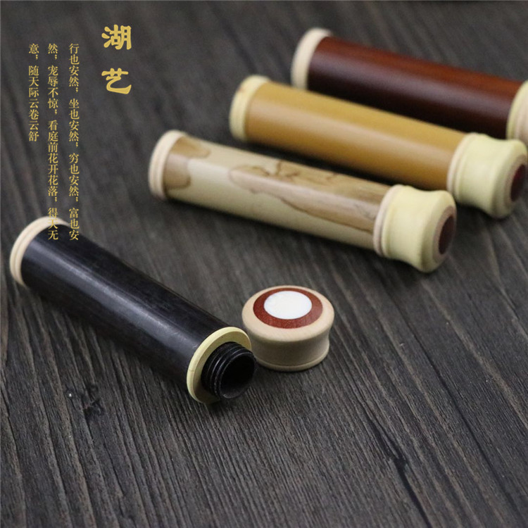 Lake Art New jade bamboo inlaid flower horn screw mouth sachet tobacco tube toothpick tube hand-polished