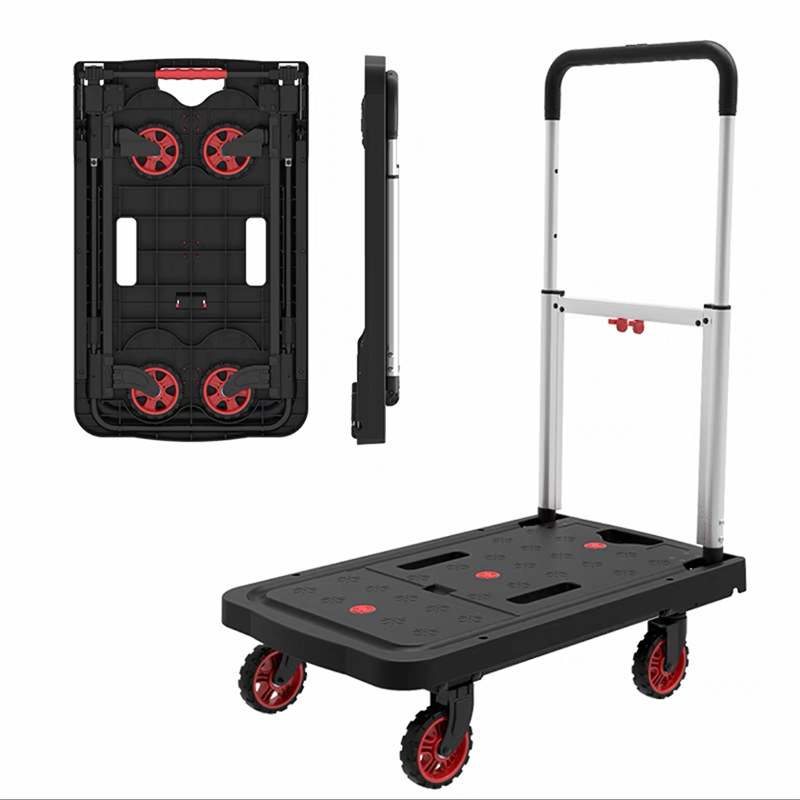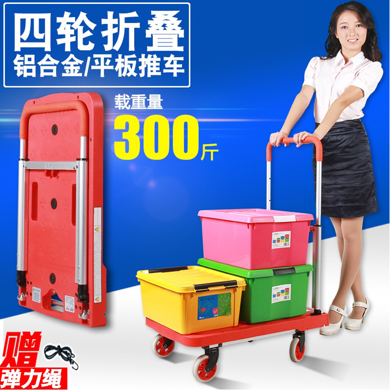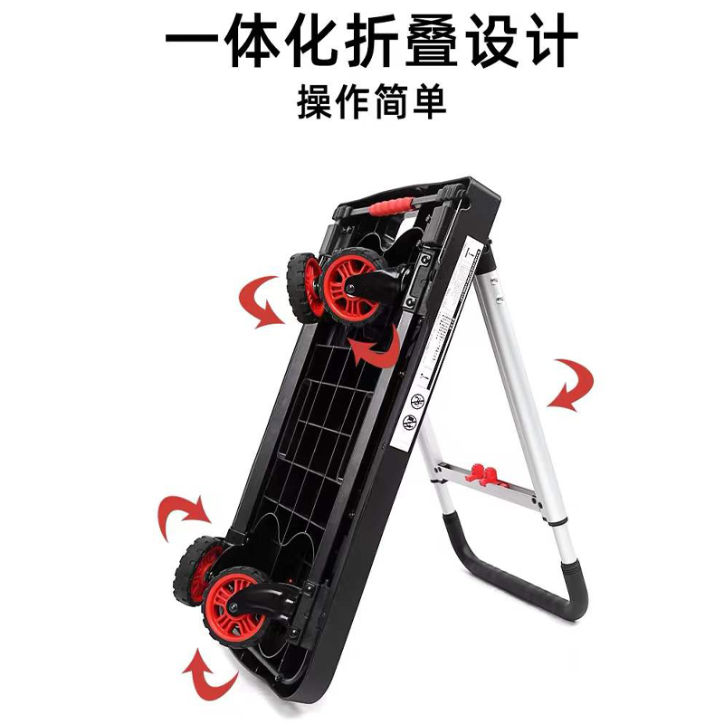 Flat truck trolley trolley folding wheel small cart pulling truck carrying car portable hand pull car home muted