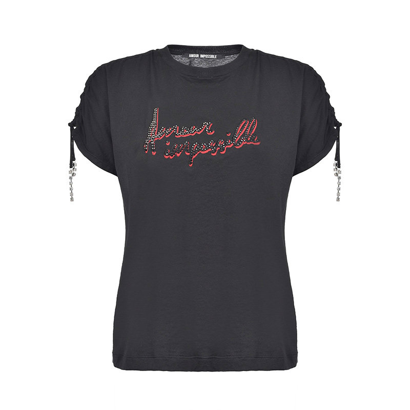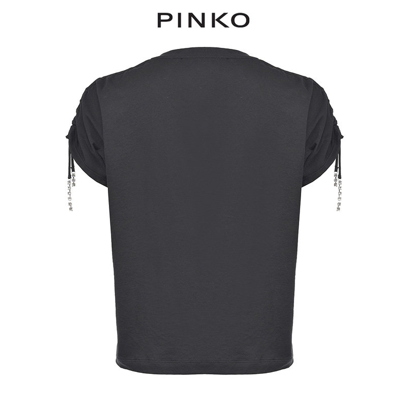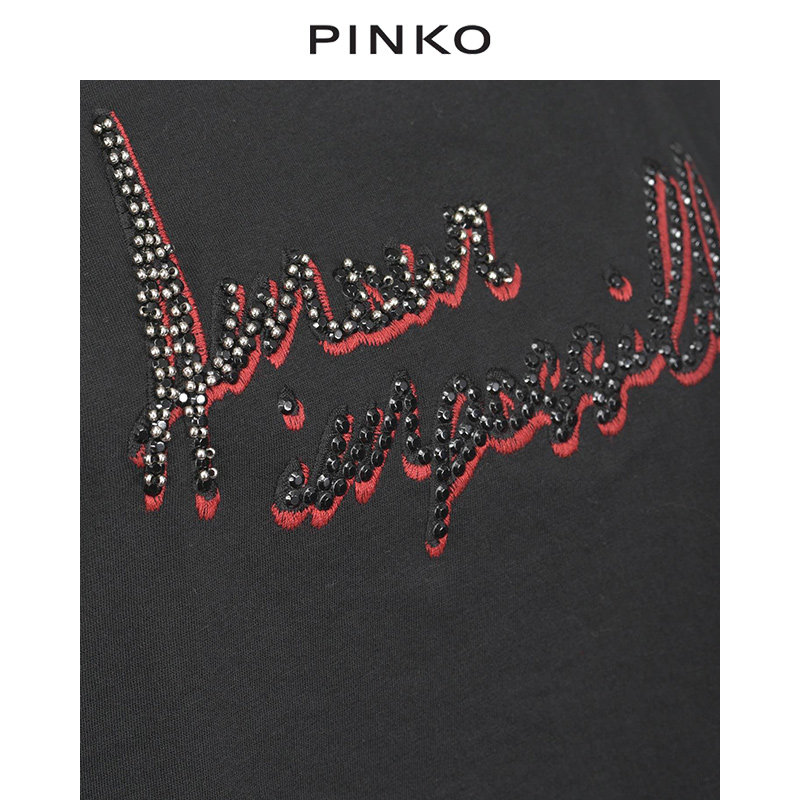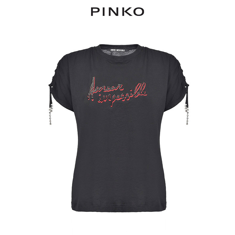 PINKO Women Rhinestone Decorative Letters Round Neck Short Sleeve T-shirt Top 3U10EF4459