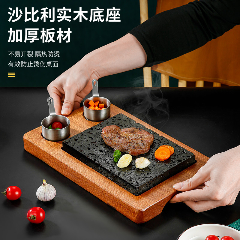 Volcanic Slate Steak Steak Pan Shabbili Wood Pan Barbecue Meat Steak Pork Steak Fried Steak Pan Rocky Barbecue Dish-Taobao