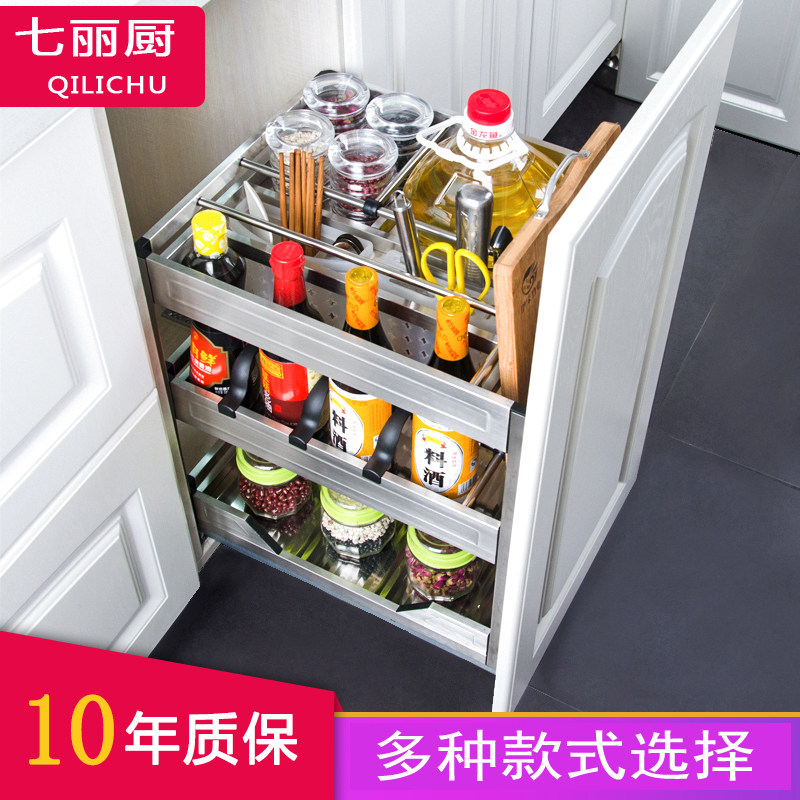 Kitchen integral cabinet 304 stainless steel cushion drawer-type sauce bottle seasoning basket damping vertical pull basket built-in 200 cabinet