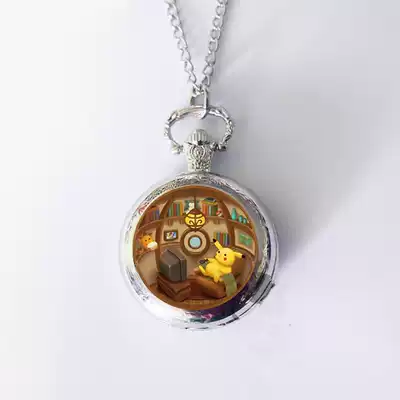 Pikachu Retro Clamshell pocket watch necklace Pet elf Anime children men and women quartz watch gift