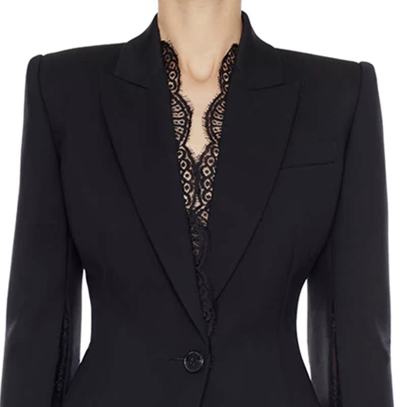 Fashion lace stitching suit jacket Cuff split slim suit two-piece temperament commuter cigarette tube pants suit