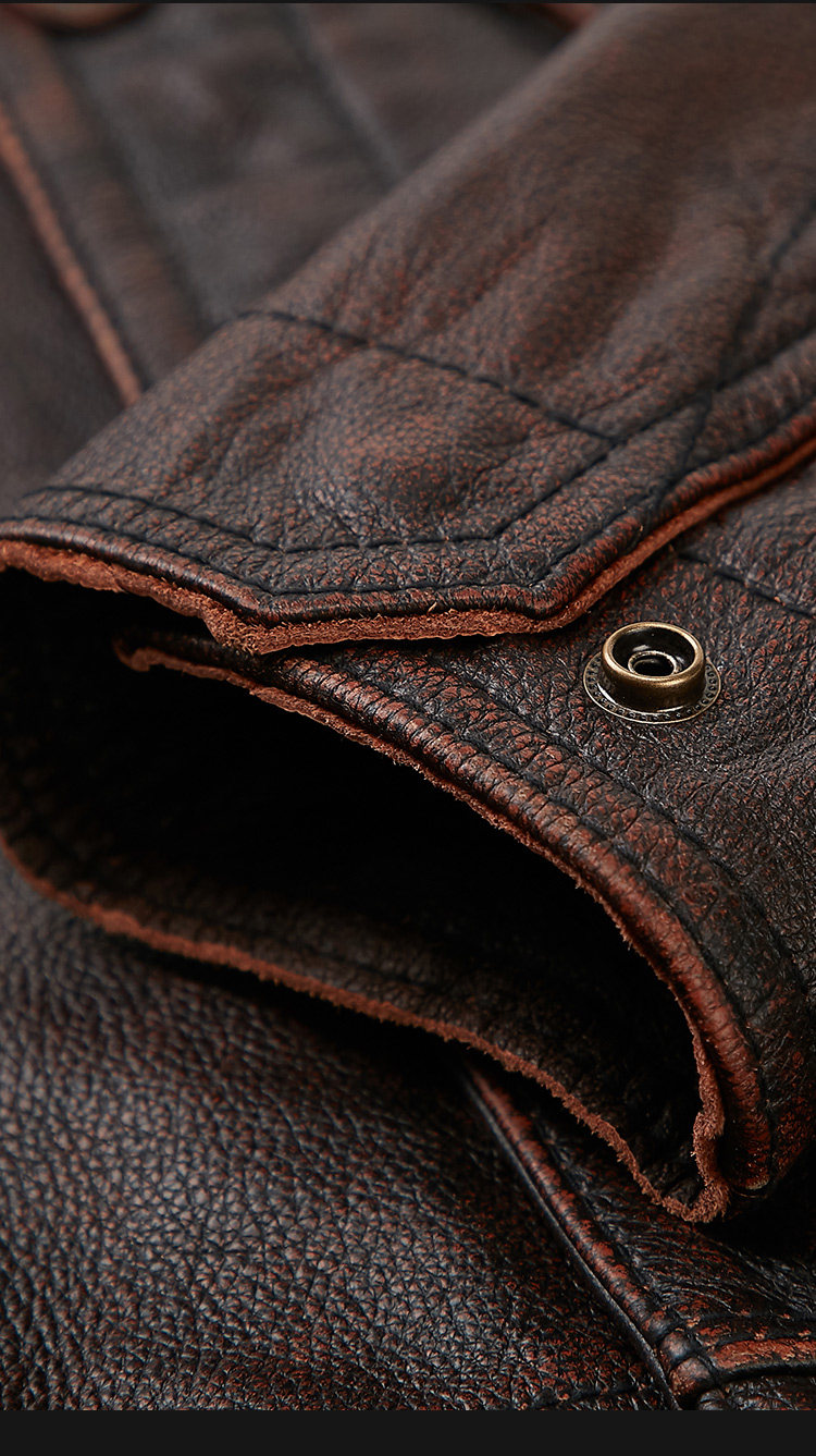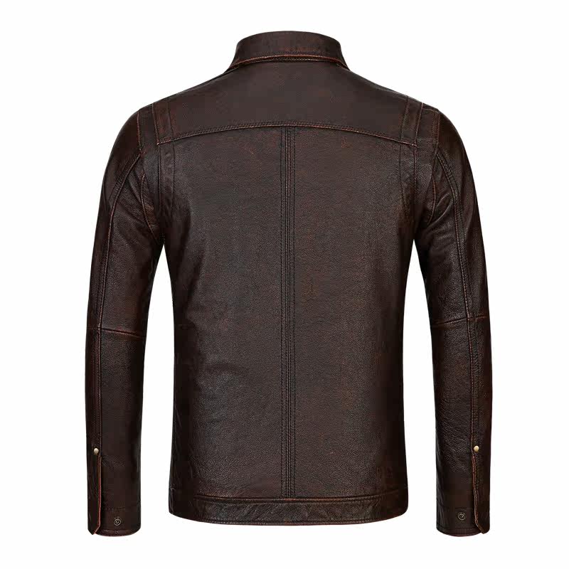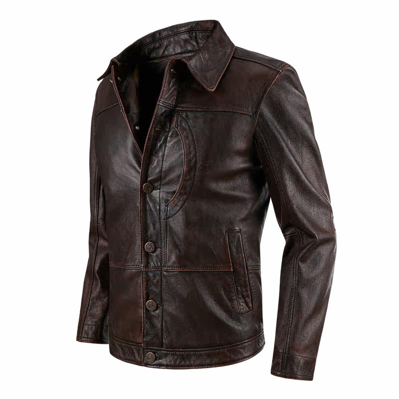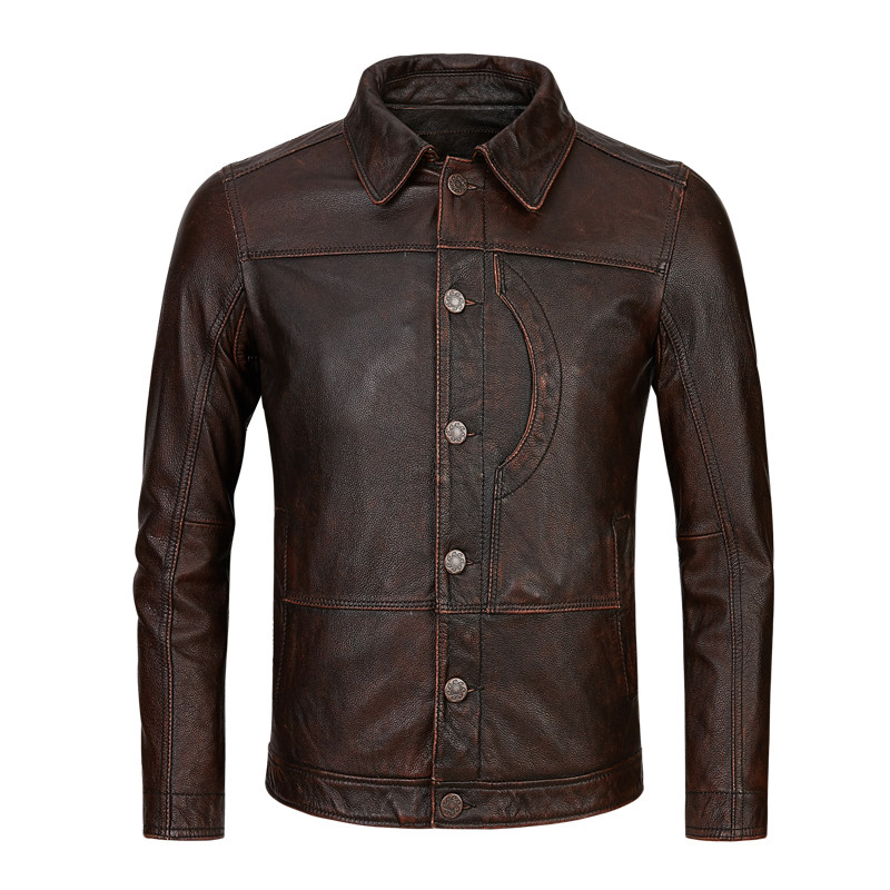 Henning genuine leather leather clothing male head layer of cow leather retro to make old self-repairing short-turned-collar locomotive men's leather jacket jacket
