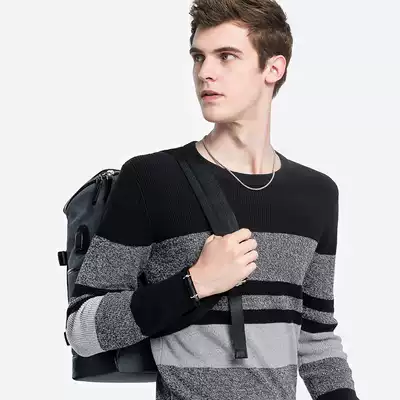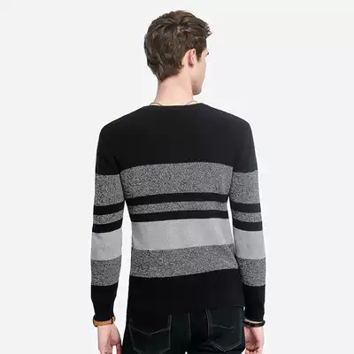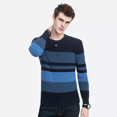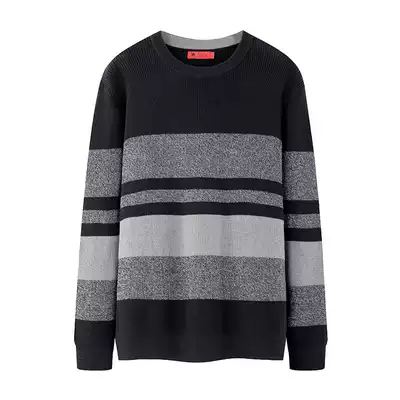 Camel men's Spring and Autumn New knitted shirt men's fashion round neck pullover striped casual thick sweater cotton clothes