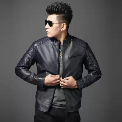2021 New Haining leather men's head sheepskin jacket young and middle-aged leather jacket men's handsome locomotive suit