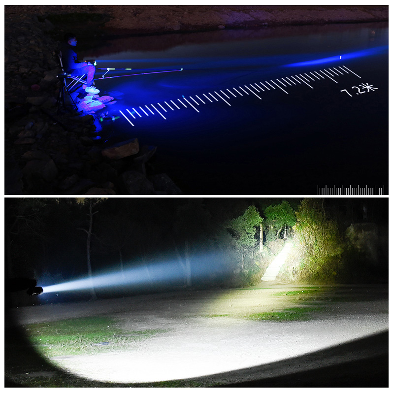 Dual light source fishing light night fishing light Blue light Super bright strong light power fishing flashlight Waterproof night fishing light drift light
