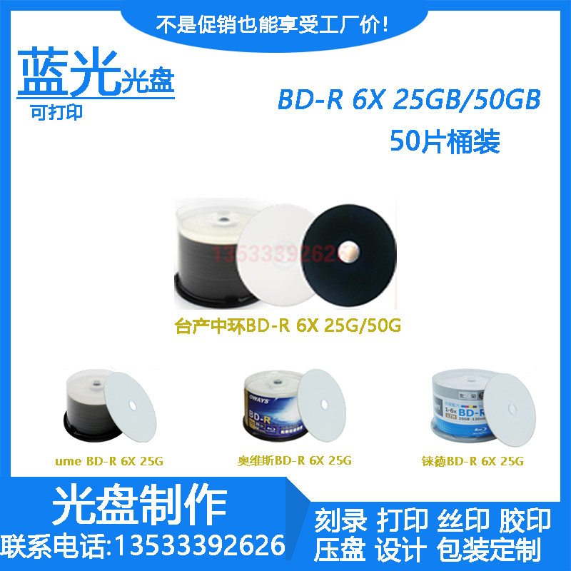 Special price promotion Central native A grade blue light printable disc 50G 6X BD-RDL blue light burning disc