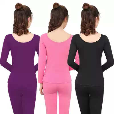 Front and rear U-neck large size autumn clothes sanitary pants sexy modal stretch close-fitting heating clothes thin long-sleeved ladies suit