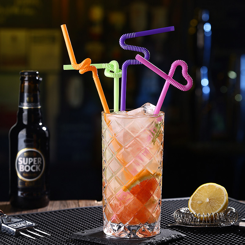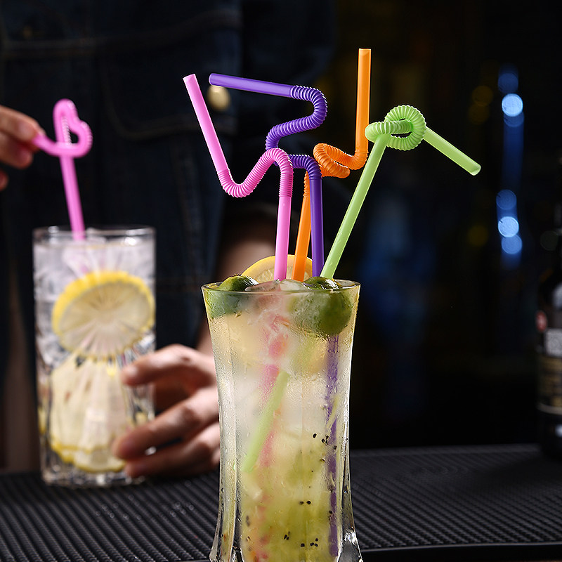 Disposable Art colored straw bar utensils cocktail straw juice drink curved straw black straw