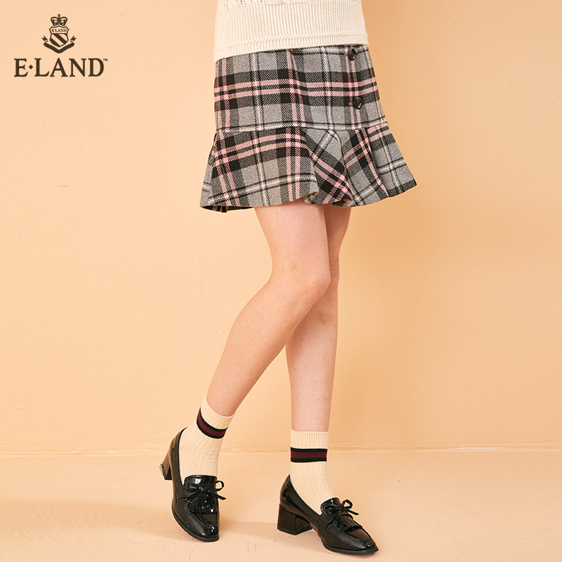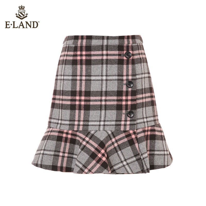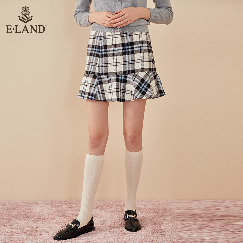 ELAND clothes summer ins check stitching fishtail breasted nanny skirt skirt base skirt