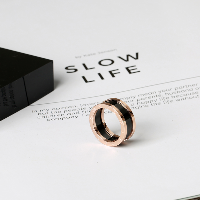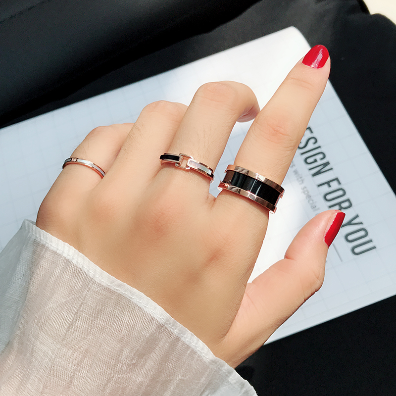 Fashion Korean version plated rose gold titanium steel index finger ring male and female couples to ring ceramic minimalist personality Chaumen ornaments